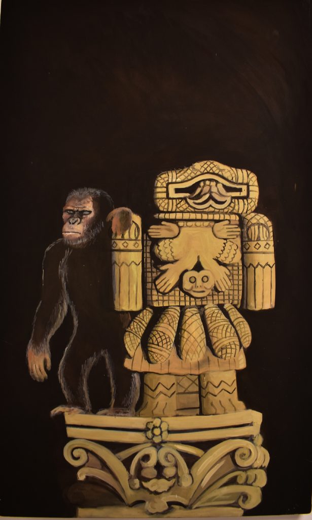 Koba de El planeta de los simios (2011) y una estatua registrada del Cementerio General de Santiago de Chile.