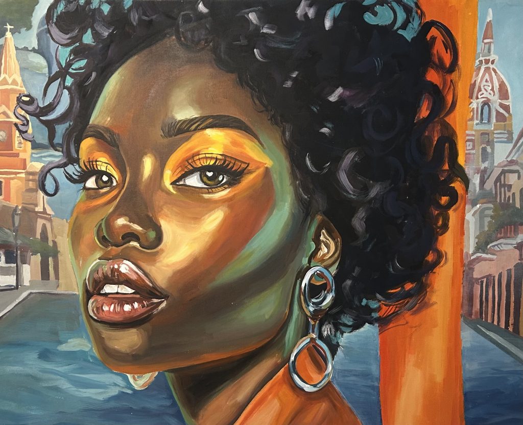 “Golden Roots” is an affirmation of origin and transformation: what comes from the past sustains, illuminates, and redefines who we are, exploring identity as a living territory where memory, origin, and light intertwine. The face, rendered in warm and vibrant tones, does not seek to faithfully represent the skin, but rather to reveal the inner energy and strength of what is inherited and inhabited.